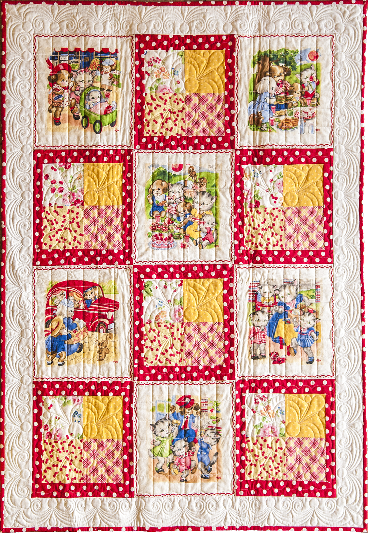 Pam Kitty Picnic Baby Quilt
