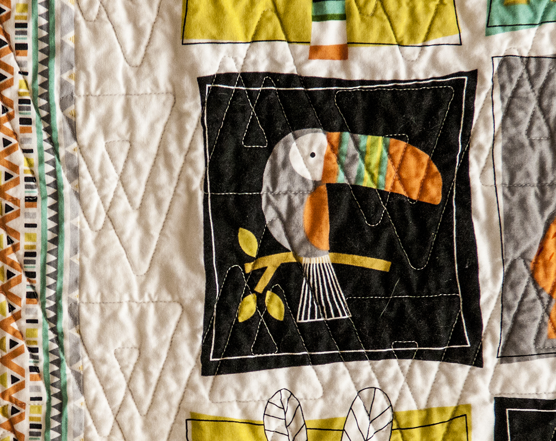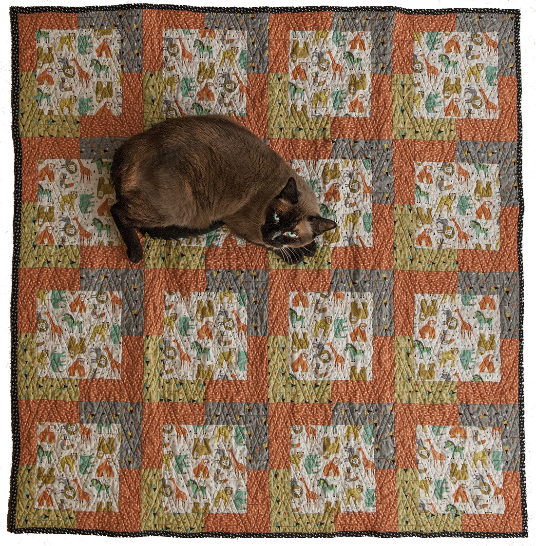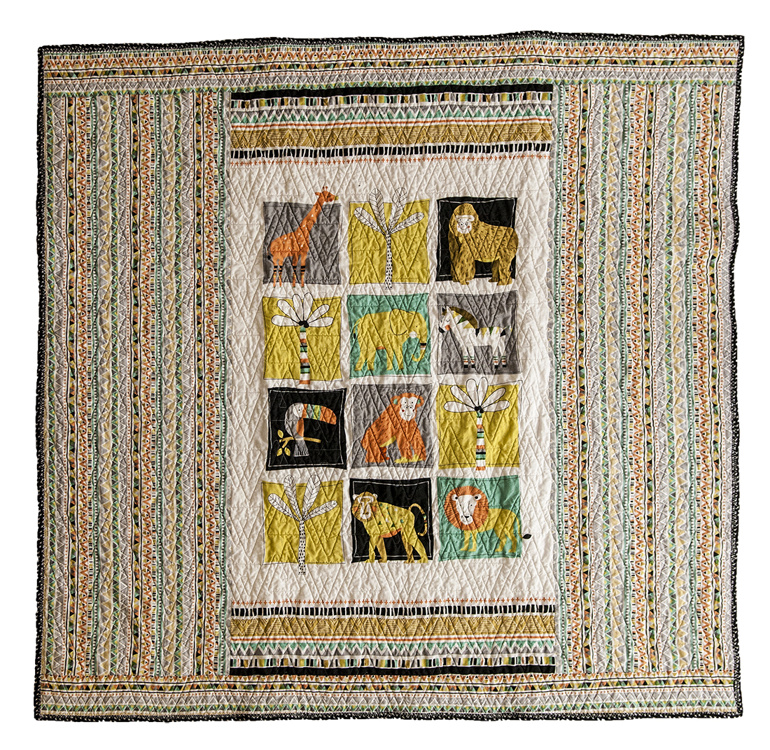 | Tossed Safari Baby Quilt | Tossed Safari Close-up | Tossed Safari Baby Quilt Back | Tossed Safari Close-up |